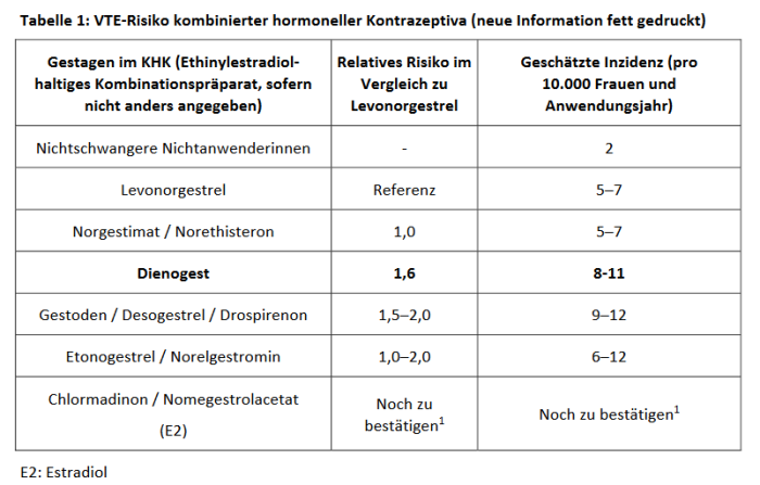 Das Risiko ist im ersten Jahr der Anwendung bzw. nach einem erneuten Beginn nach über 4 Wochen Pause am höchsten. Mit zunehmenden Alter und bei Raucherinnen ist dieses Risiko deutlicher erhöht.