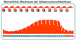 - Der monatliche Aufbau der Gebärmutterschleimhaut wird stark vermindert, und die Dicke nimmt deutlich ab. Eine Eizelle, die ausnahmsweise befruchtet würde, könnte sich gar nicht in der Gebärmutterschleimhaut einnisten. Ein zusätzlicher Vorteil der Verminderung der Gebärmutterschleimhaut ist, dass die Monatsblutungen nach und nach kürzer, schwächer und weniger schmerzhaft werden.