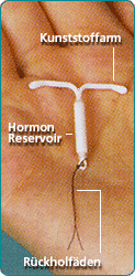 Begleiterscheinungen wie z.B. Kopfschmerzen und Brustspannen treten meist in der Anpassungsphase der ersten 3 - 4 Monate auf und sind oft nur vorübergehend. Da das Gestagen des IUS direkt in die Gebärmutterhöhle abgegeben wird, ist die täglich erforderliche Hormonmenge sehr klein. Die im Blut meßbaren Hormonkonzentrationen sind etwa 10mal niedriger als bei der Minipille und etwa 60mal geringer als bei der Pille. Das IUS ist daher sehr gut verträglich.